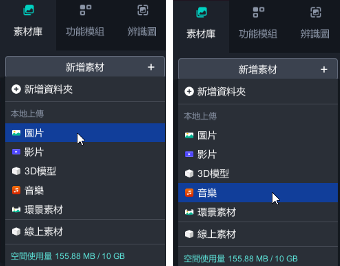 4. Import image and audio to the resources, Click "New Resources" > "image" and "New Resources" > "Audio".