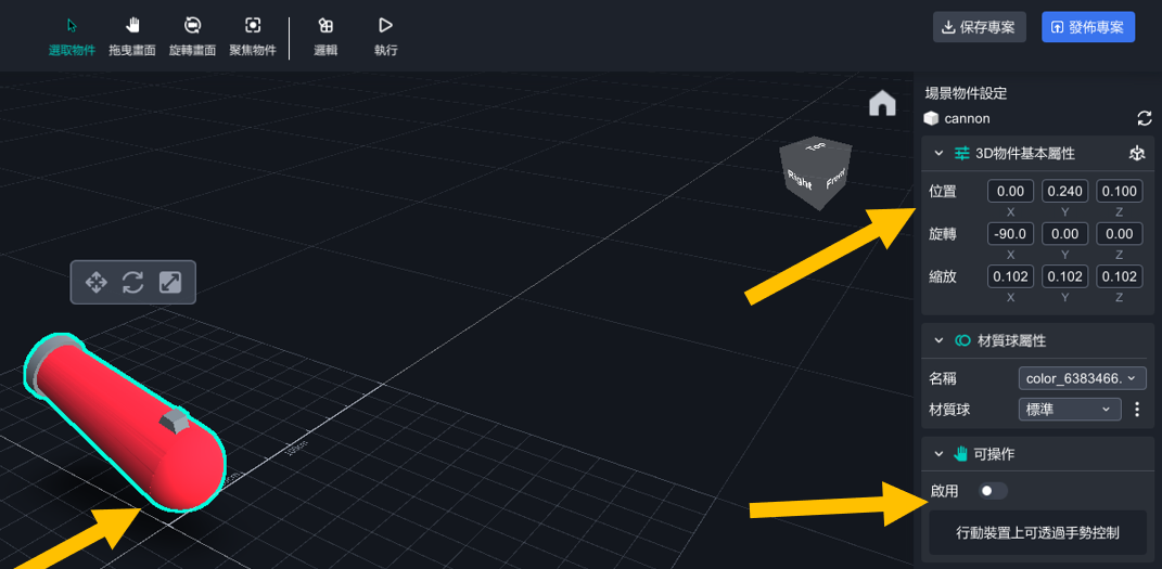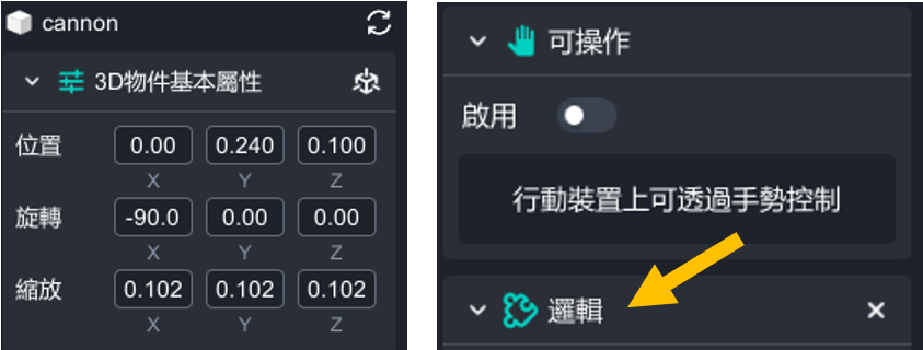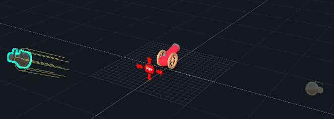 Drag the object of the cannon to the scene and edit position, rotate, scale. Cancel interactable and add action logic.