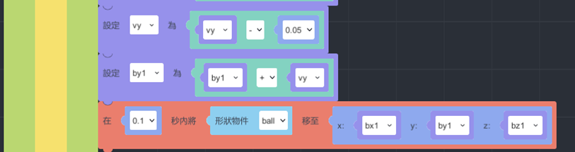 And the vy value is going small by getting higher. It will decrease by 0.05 each time it is looped.