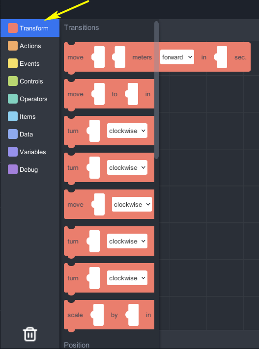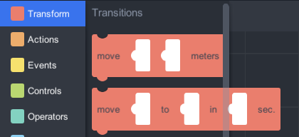 4. Click and drag “Transform” > “move…to…in…sec” to the editing space