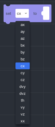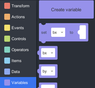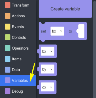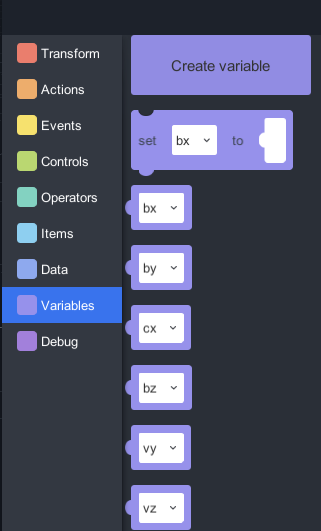 1. Drag the blockly of variables, and drop it to create a variable. Arrange every value according to this sheet.